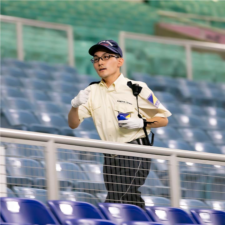 プロ野球の試合やコンサートなどの来場者へ案内・誘導・接客をするイベント警備をお任せ。しっかりした研修もあるので未経験でもスグに始められます。にぎやかな雰囲気のなか、楽しくお仕事できますよ。