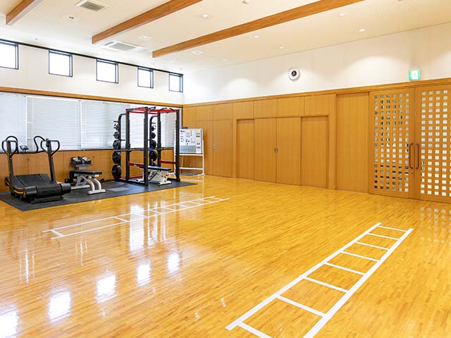 本社ビル5階にある体育場では、一般の方でも利用可能。災害時には地域住民の方に緊急避難場所として開放します。