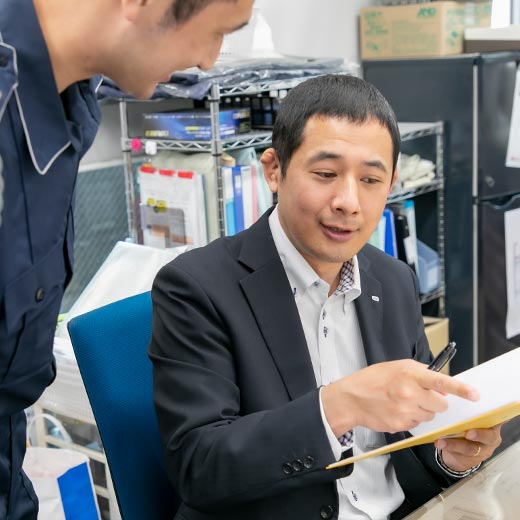 常駐警備課での常駐警備、警送隊での現金輸送など、数々の現場での豊富な経験を持つベテラン社員。現在は副部長として、各警備隊が滞りなく業務を遂行できるよう、管理を行う日々。また、より良いサービスを提供するためお客様との打ち合わせを重ねるなど、警備課をまとめる存在となっている。